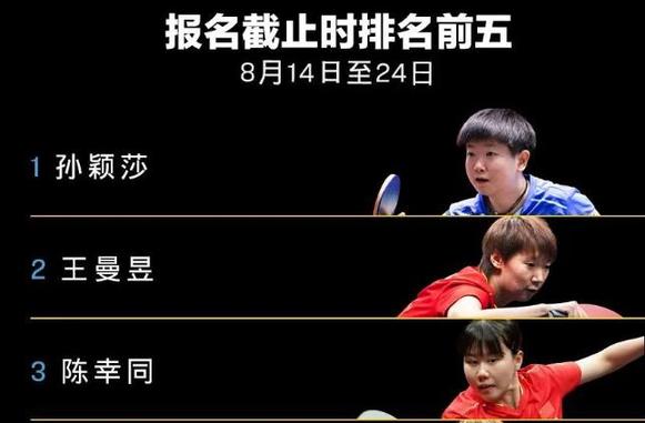女单方面,报名截止时排名前五的运动员均为中国队选手,她们是孙颖莎、王曼昱、陈幸同、王艺迪和蒯曼。国乒队员石洵瑶、钱天一、陈熠也将出战。其他协会名将包括日本的张本美和、伊藤美诚、大藤沙月和早田希娜,以及韩国的申裕斌。