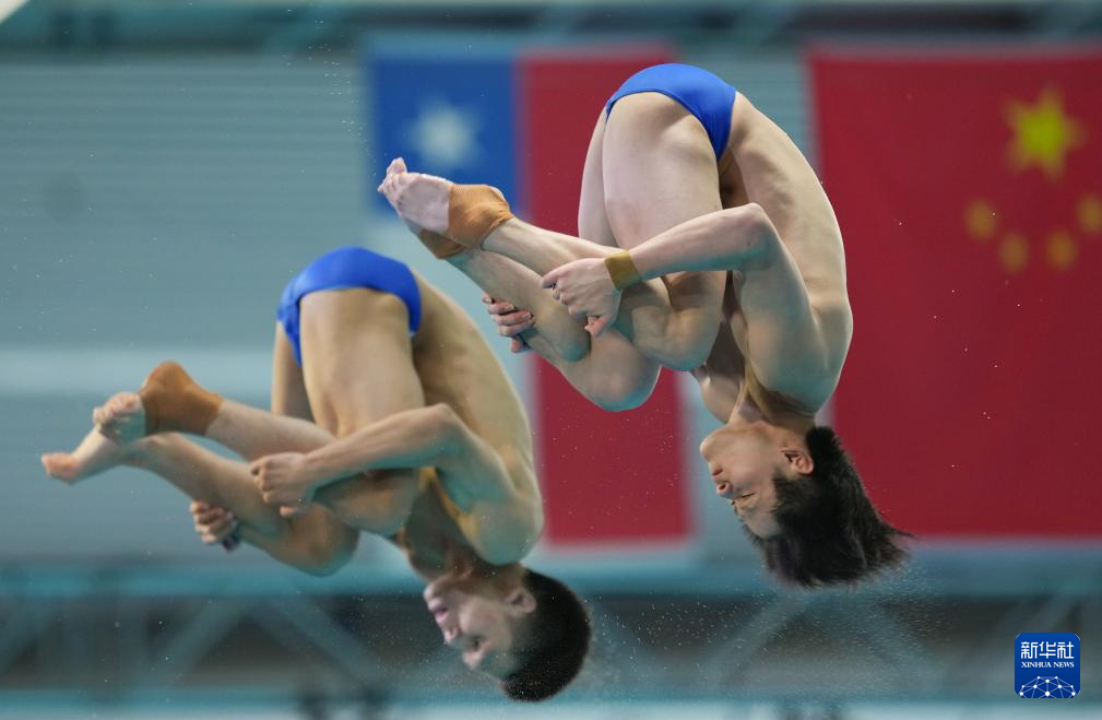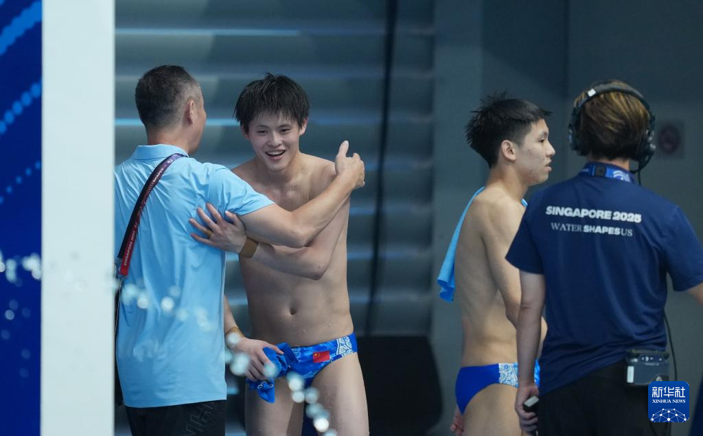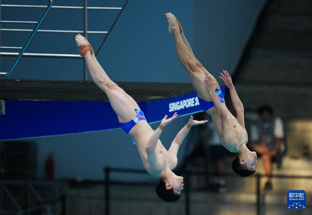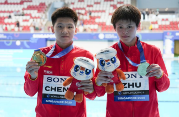 当日,在新加坡举行的2025年世界游泳锦标赛跳水男子双人10米台决赛中,中国组合程子龙/朱子锋夺冠。