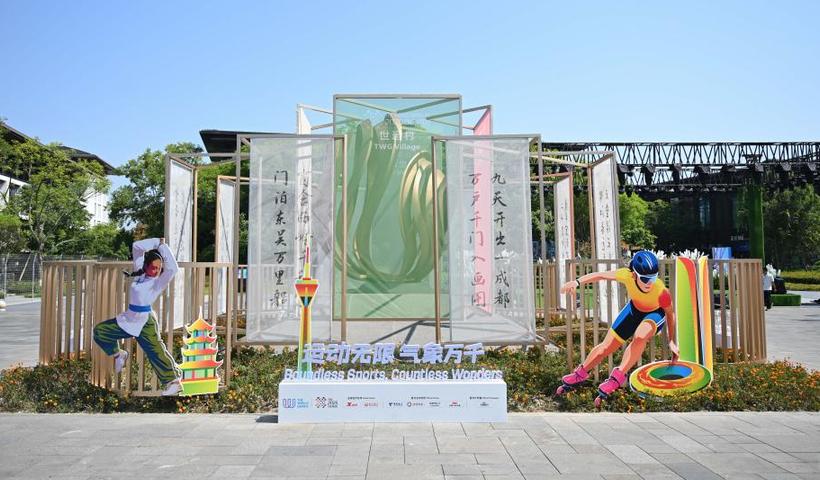 这是8月3日在成都世运会运动员村内拍摄的文化活动区。新华社记者胥冰洁 摄
