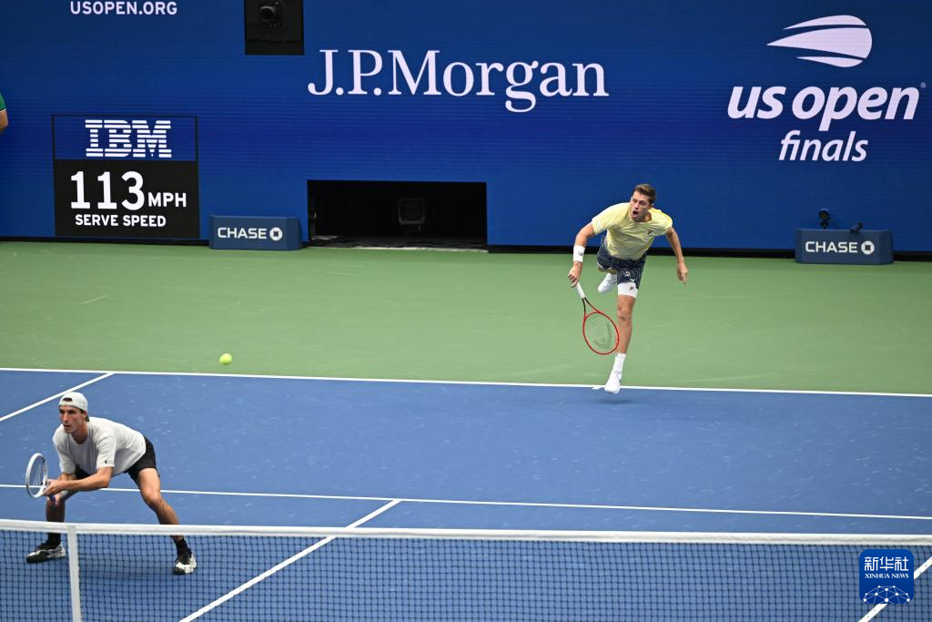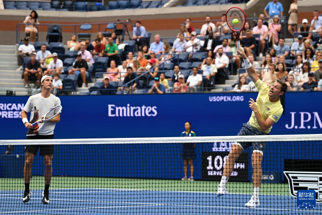 9月6日,索尔兹伯里/斯库普斯基(右)在比赛中发球。