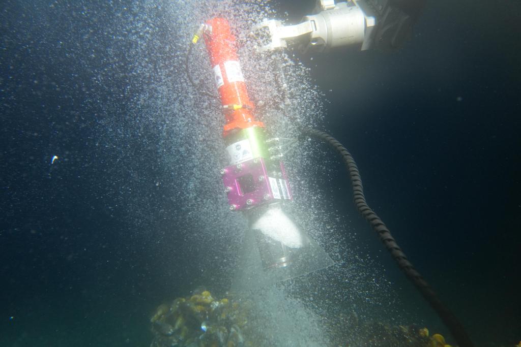 采火装置在海底冷泉喷口采集可燃冰(9月18日摄)。新华社发(广州海洋地质调查局供图)