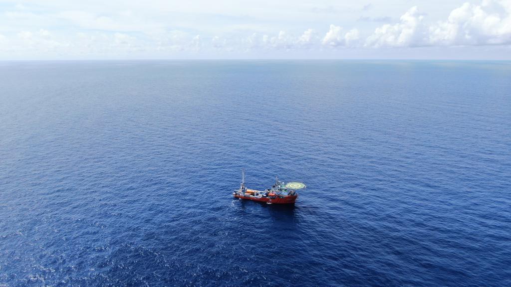 “海洋地质二号”科考船搭载“海马”号深海遥控潜水器在南海北部进行“源火”采集(9月18日摄)。新华社记者 卢汉欣 摄