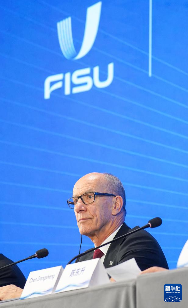 11月26日,国际大学生体育联合会主席雷诺·艾德在新闻发布会上。