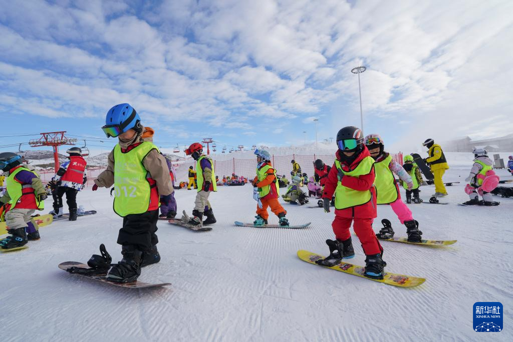 12月1日,学生在阿勒泰将军山国际滑雪度假区练习单板滑雪。