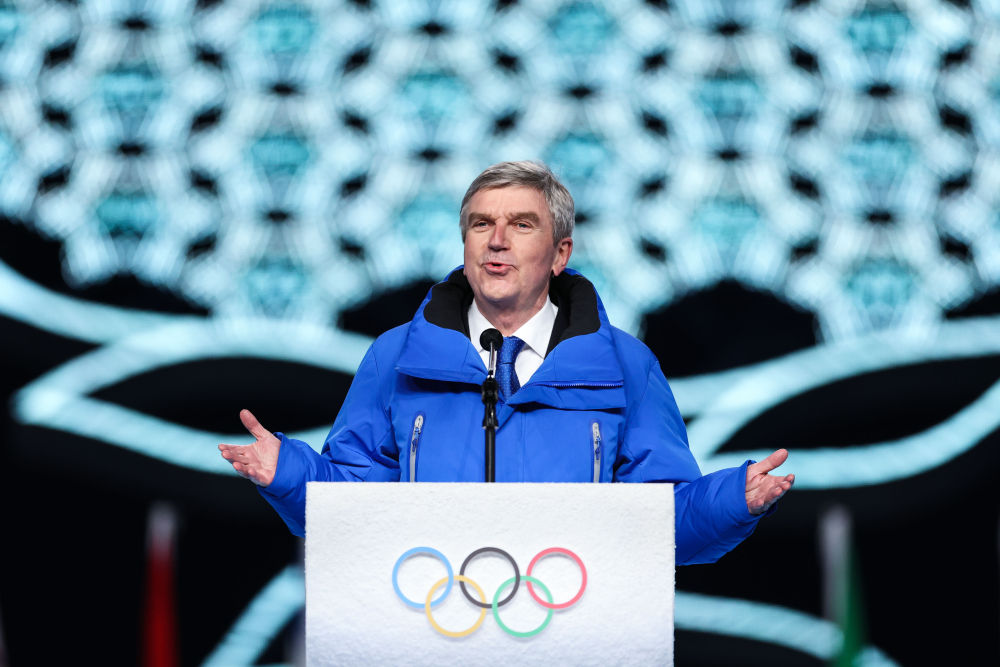 2022年2月4日,巴赫在北京冬奥会开幕式上致辞。新华社记者曹灿 摄
