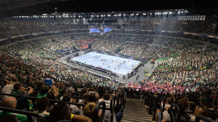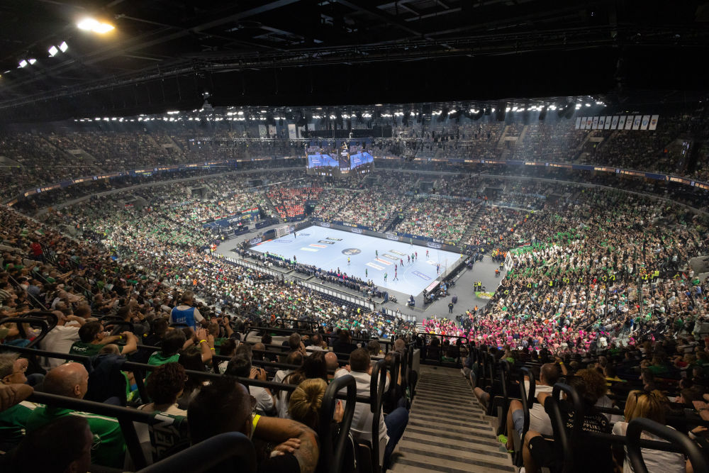 图为2023年正在举行一场手球比赛的MVM穹顶体育馆