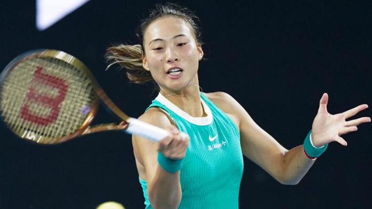 2024年1月27日,郑钦文在2024年澳大利亚网球公开赛女单决赛中。新华社记者 王申 摄