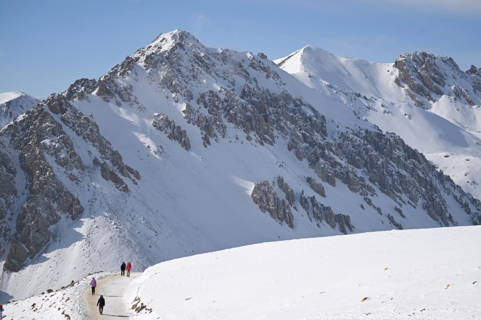 新华社西宁1月8日电(记者孙爱东、李琳海)小寒节气,天寒地冻。湛蓝天空下,岗什卡雪山巍然耸立。山谷气温已降到零下20摄氏度。然而,在岗什卡雪山游客服务中心,却是人潮涌动,呈现出热“雪”沸腾的景象。全国各地慕名而来的冰雪运动爱好者背着各种登山装备,正整装待发,准备打卡“人生第一座雪山”。