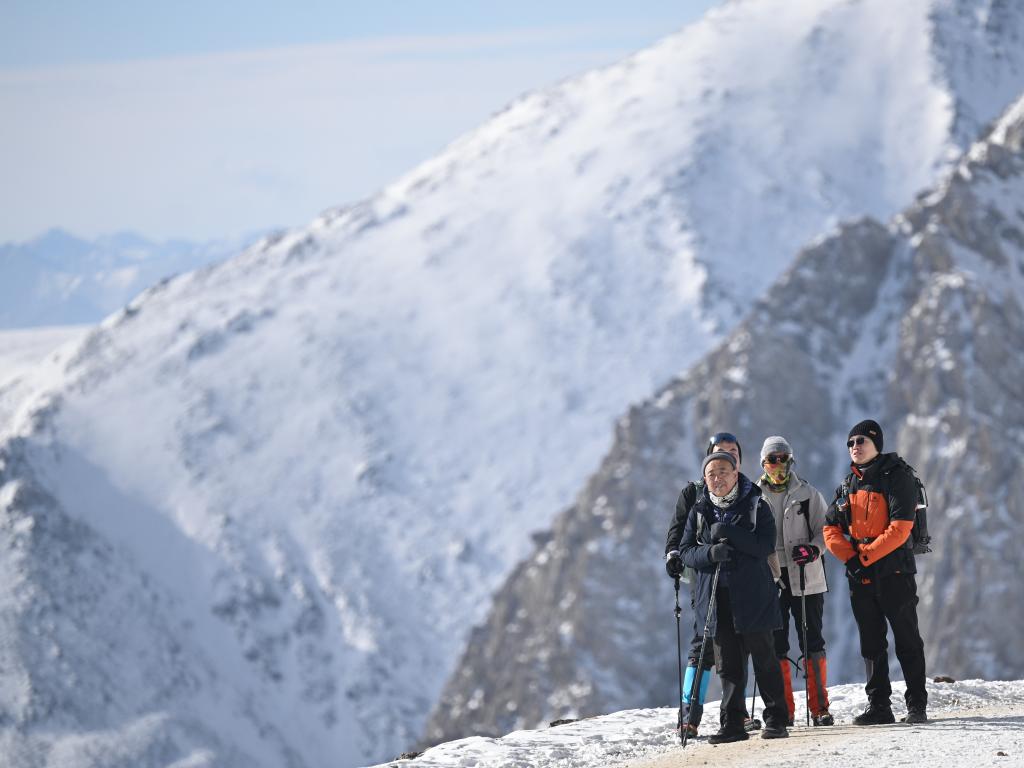1月1日,登山爱好者在攀登岗什卡雪峰。新华社记者 齐芷玥摄