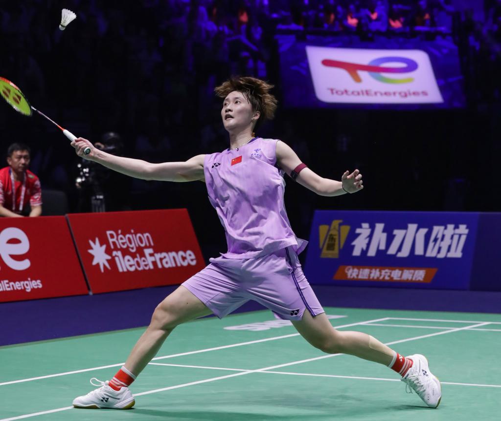 ↑2025年8月30日,在法国巴黎举行的2025年世界羽毛球锦标赛女单半决赛中,中国选手陈雨菲2:0战胜韩国选手安洗莹,晋级决赛