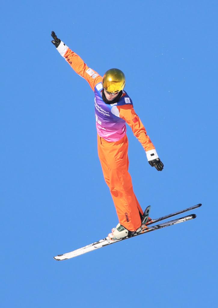 2025年12月21日,中国一队选手李天马在决赛中。最终,由徐梦桃、李天马、齐广璞组成的中国一队获得冠军。当日,国际雪联自由式滑雪空中技巧世界杯(云顶站)混合团体项目比赛在河北省张家口市崇礼区云顶滑雪场进行。新华社发(武殿森摄)