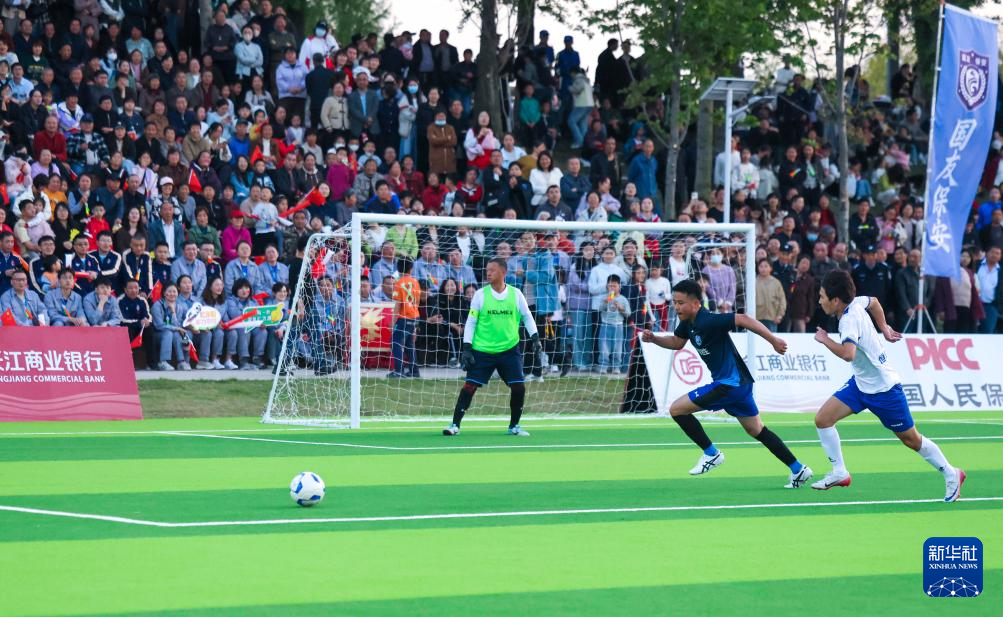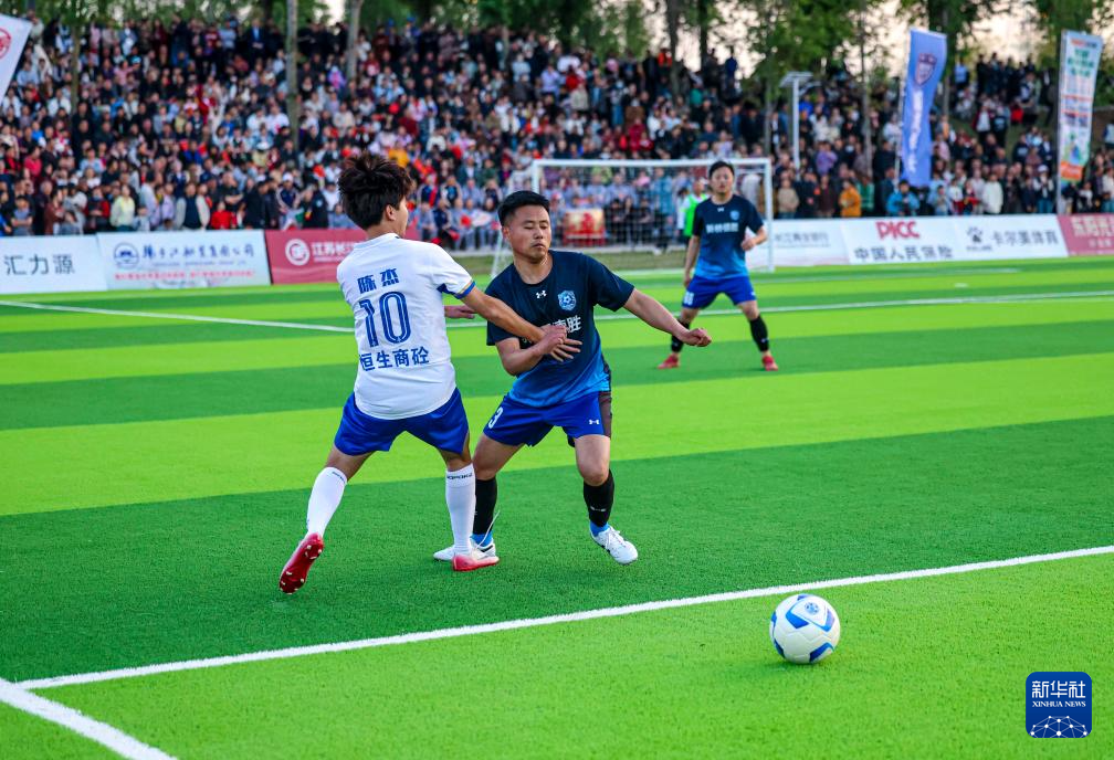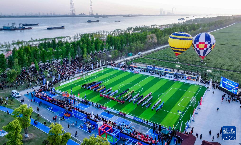4月19日,2026靖江乡村足球超级联赛揭幕战在江苏省靖江市江畔足球场举行。本次“村超”共有19支乡村球队参赛,赛事将持续至8月底,共进行93场比赛。