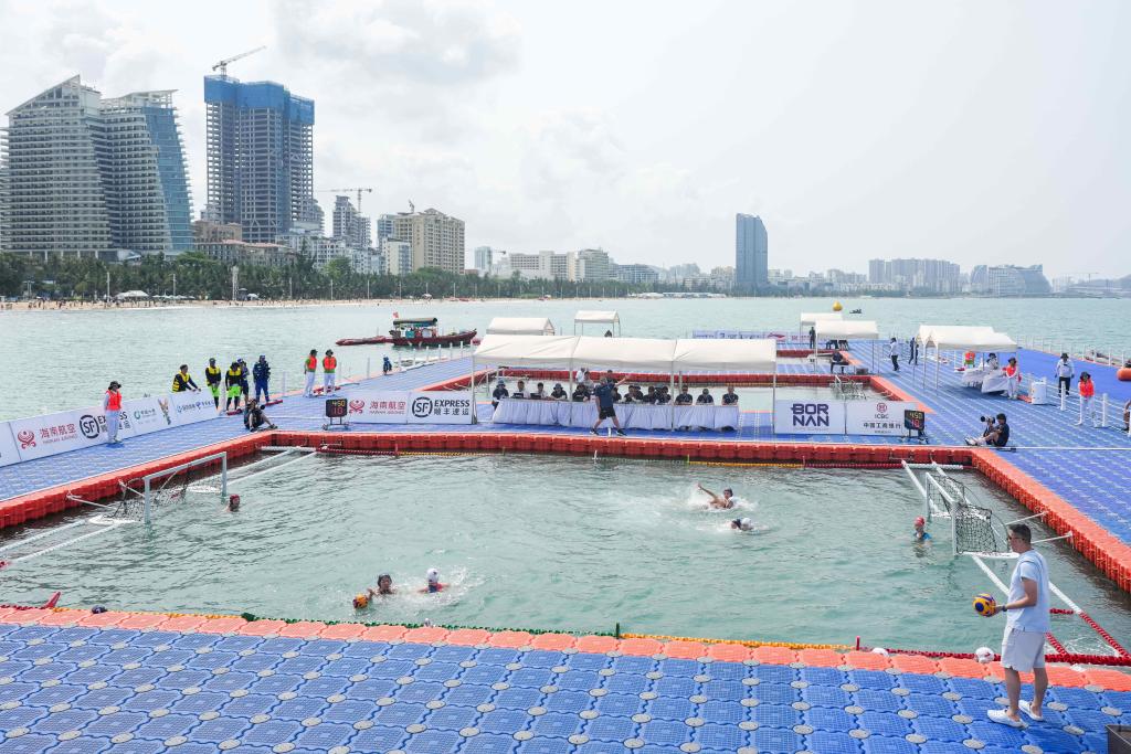 4月22日,亚沙会女子水球比赛在海水场地中进行。新华社记者陈思汗 摄